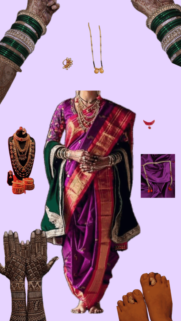 - Women wear Nauvari sarees (nine-yard drapes) symbolizing strength and elegance.